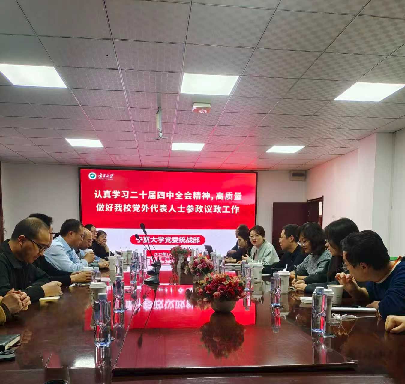 活动中,党外代表人士参观了党外代表人士工作室、政协委员会客室,围绕我校党外代表人士参政议政的工作成果,展开热烈探讨和交流。金忠杰教授受邀作了题为“认真学习党的二十届四中全会精神,高质量做好党外代表人士参政议政工作”的专题讲座,从党的二十届四中全会的意义、定位、内容等,尤其对国家“十五五”发展的顶层设计与战略擘画,做了学习和思考分享,并从党外人士参政议政的立意、定位、心得等角度作了深入交流。